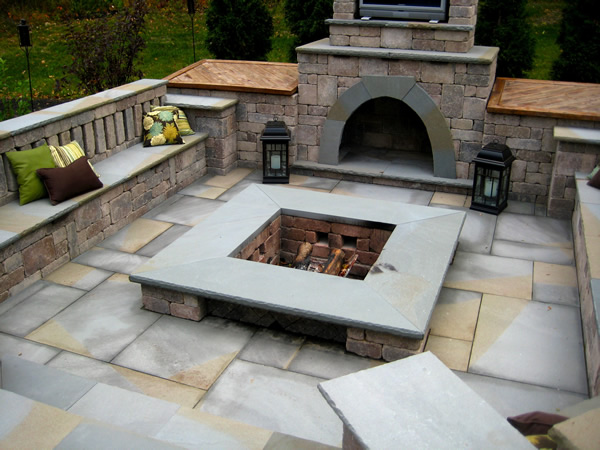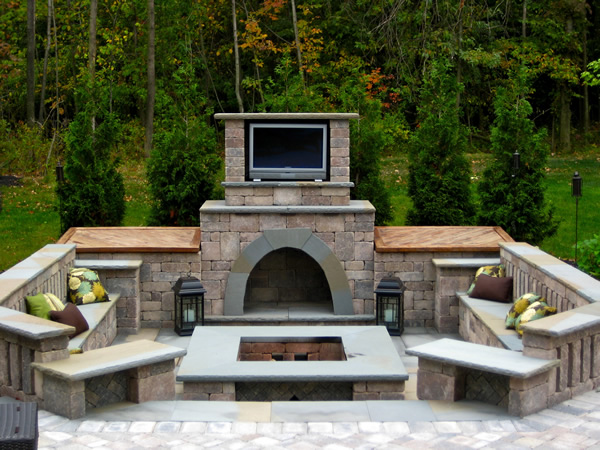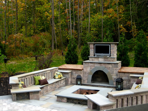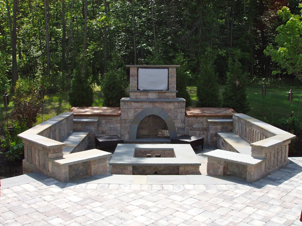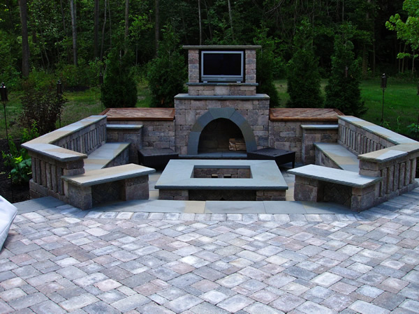 This custom paver patio and outdoor fireplace with pit was truly unique.