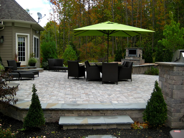 Custom Patio in Macedonia, Ohio With Outdoor Fire Place and Pit.