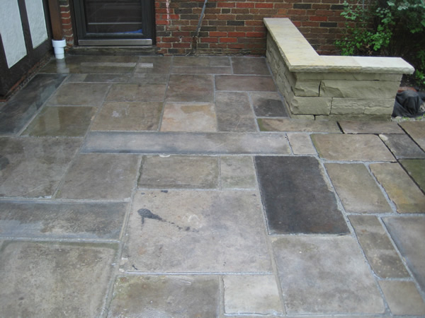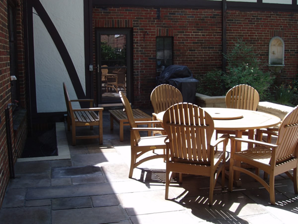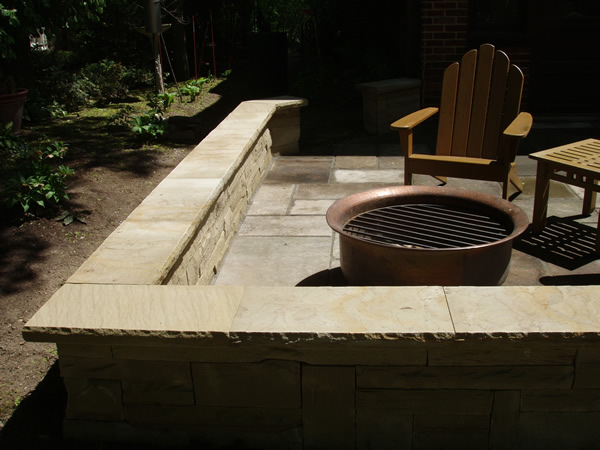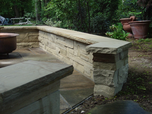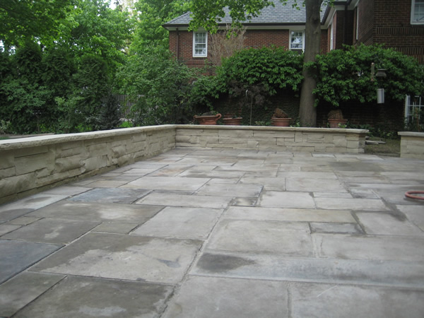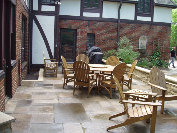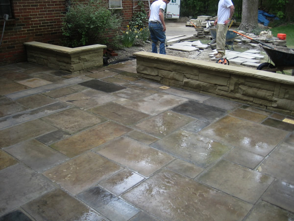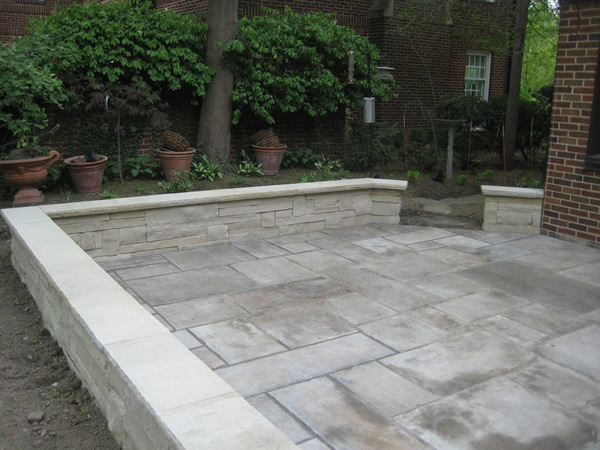 Beautiful paver patio with stone wall in Shaker Heights, Ohio.