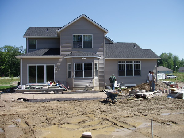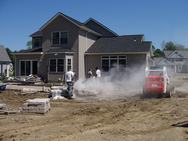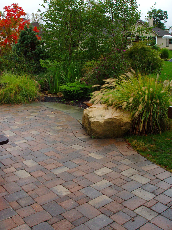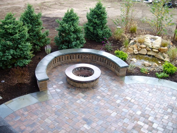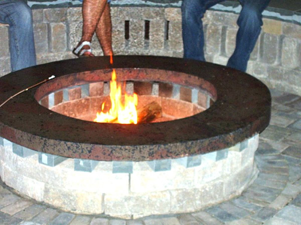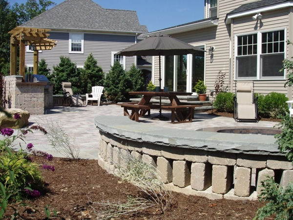 Beautiful paver patio with outdoor kitchen and custom fire pit in Willoughby Hills, Ohio.