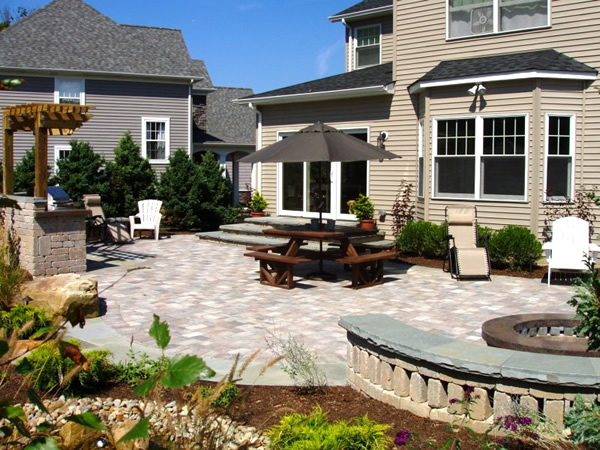 Beautiful Paver Patio With Custom Fire Pit and Pergola in Willoughby Hills, Ohio.